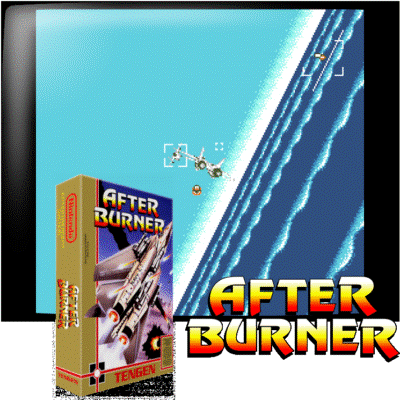 Afterburner は、同名のアーケード ゲームを変換したものです。目標はシンプルです。F-14 トムキャットを使用して、できるだけ多くの敵を撃ちます。この機体にはロックオンミサイルとバルクという2つの武器が搭載されています。
