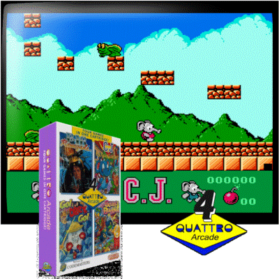 Quattro Arcade es una colección de 4 juegos arcade de acción, todos ellos con modos para un jugador y para 2 jugadores. 1. Las travesuras del elefante de C.J.: C.J. el elefante fue y quedó atrapado en una trampa para elefantes...